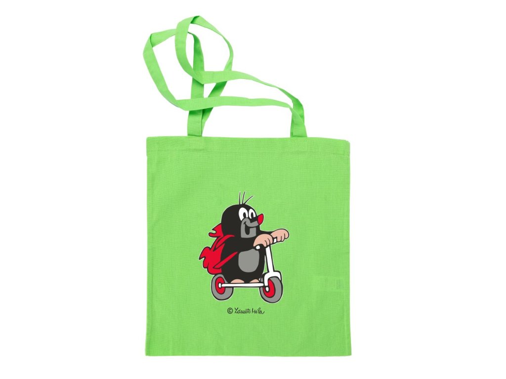 Detská zelená plátenná taška Krtko kolobežka 42x38 cm