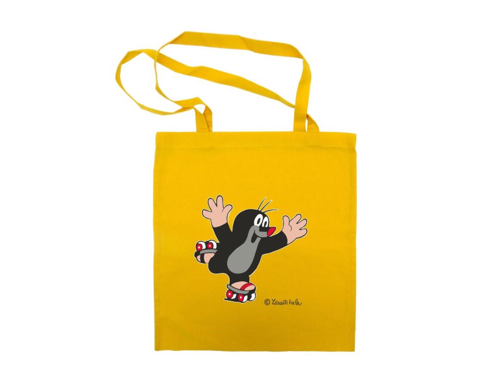 Detská žltá plátenná taška Krtko korčuliar 42x38 cm