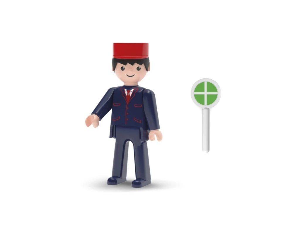 Z prvého nástupišťa je pripravený vyraziť vlak do sveta fantázie a dobrodružstva. Daj povolenie k odchodu vlaku s Igráčkom výpravcom. Igráček výpravca je vhodnou hračkou pre všetky deti. Hravou a originálnou formou rozvíja detskú predstavivosť a pomáha spoznávať profesiu výpravcu.
