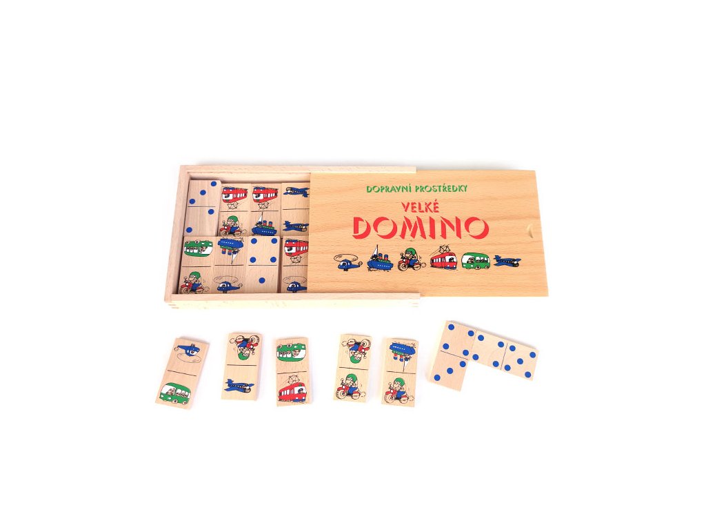 Veľké obojstranné domino s obrázkami dopravných prostriedkov, ktoré je vhodné pre vaše deti.